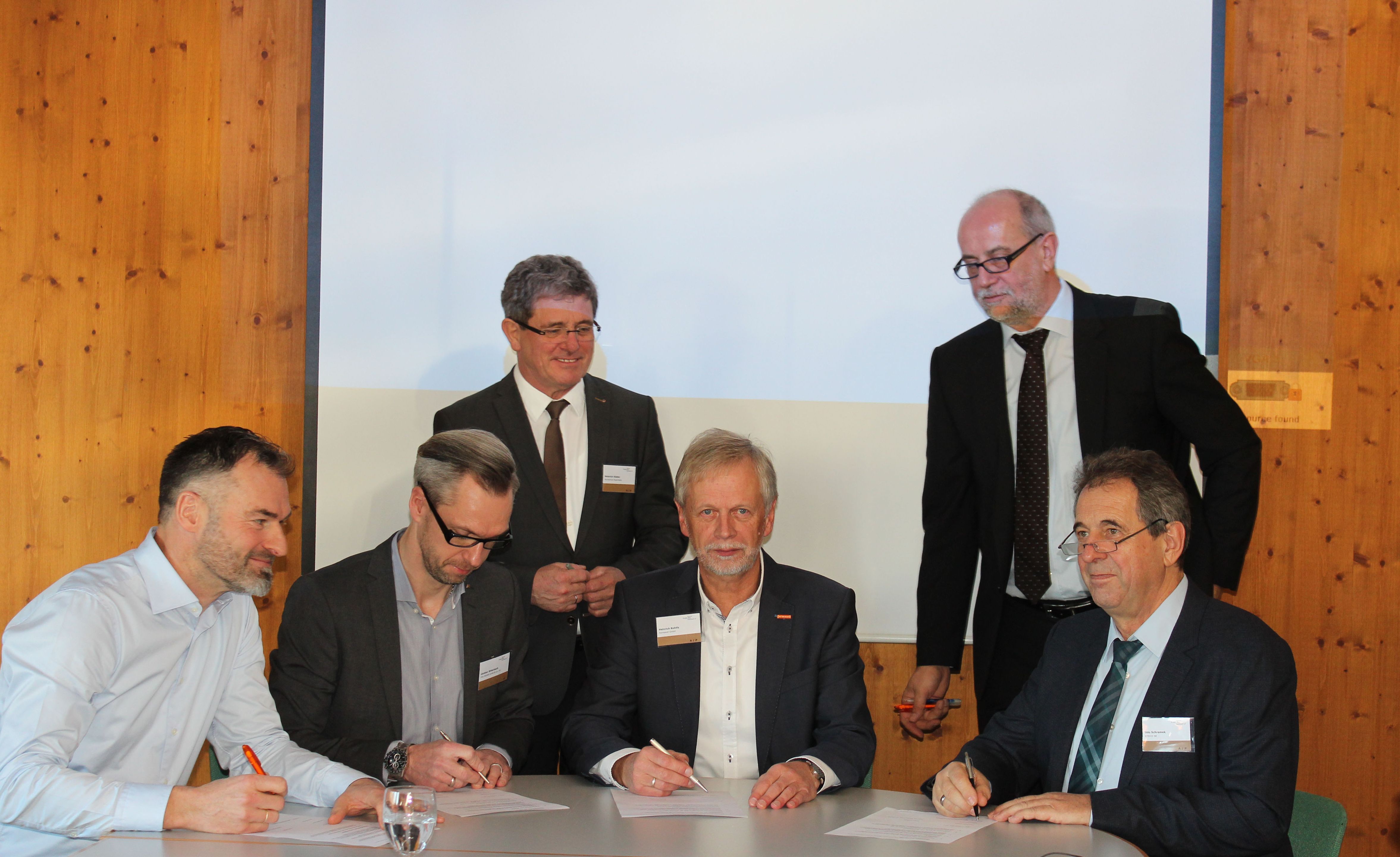 Die Kooperationspartner bei Abschluss der Vertragsverlängerung (von links): Gottfried Jäger, Geschäftsführer hsbcad GmbH; Carsten Ritterbach, Geschäftsführer Vertrieb/Marketing Bauprodukte, Fritz Egger GmbH; Professor Dr. h.c. Heinrich Köster, Prä [935,39 KB]
