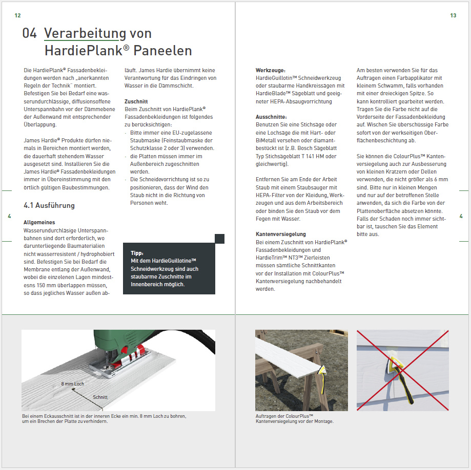 James Hardie stellt zur BAU eine Verarbeitungsanleitung für HardiePlank Fassadenbekleidungen vor. In insgesamt acht Kapiteln erfahren Verarbeiter darin alle Details zur richtigen Verarbeitung. (Bildnachweis: James Hardie Europe GmbH) [187,77 KB]