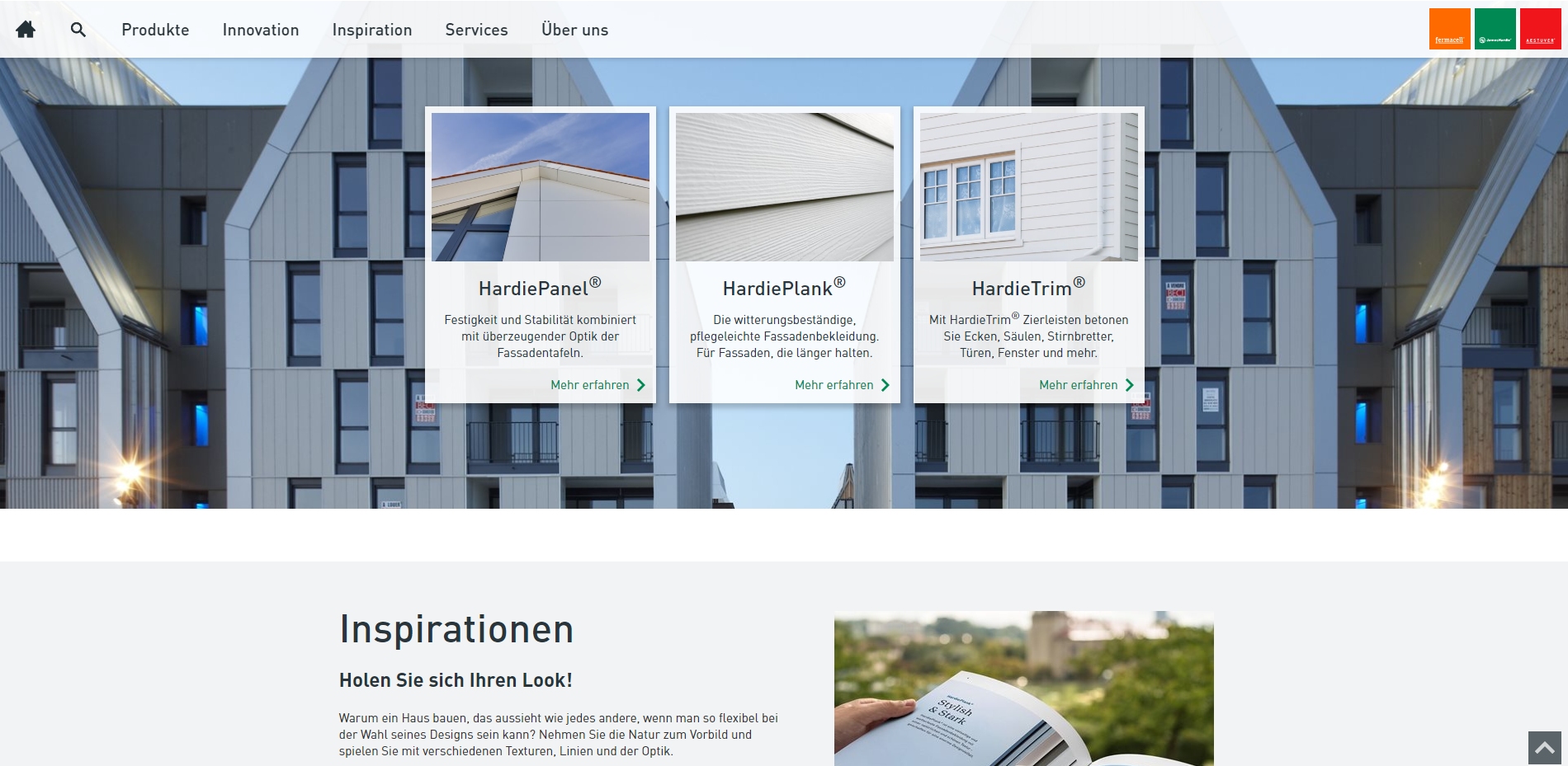 jameshardie.de ab sofort im gleichen Design wie die fermacell® und AESTUVER® Webseiten. Die neue Internetseite punktet mit optimierter Navigation zur einfacheren Anwendung - damit unsere wertvollen Inhalte schneller und besser gefunden werden.
