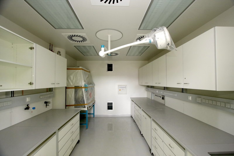 Beim Innenausbau von Laboren im Forschungsgebäudes D4 des Universitätsklinikums Regensburg erwiesen sich Bauplatten aus Leichtbeton als ideale Lösung, da sie sowohl wasserfest als auch säurebeständig sind. Außerdem konnte damit die für die aseptischen Bereiche der Laborräume geforderte gasdichte Ausführung einfach realisiert werden.