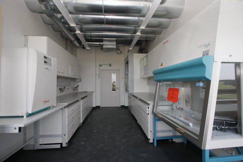 Bei der Planung des Gebäudes wurde großer Wert auf die Zusammenfassung gleich gearteter Labornutzungen sowie auf eine klare Trennung zwischen den Laborräumen und den Büro- und Nebenräumen gelegt. Dabei sind die Büros und Labore immer gegenüber liegend angeordnet, und jeweils durch einen Flur getrennt. Zusätzlich sind die Labore durch Türen untereinander verbunden. Damit wurde gleichzeitig ein zweiter Rettungsweg gewährleistet.